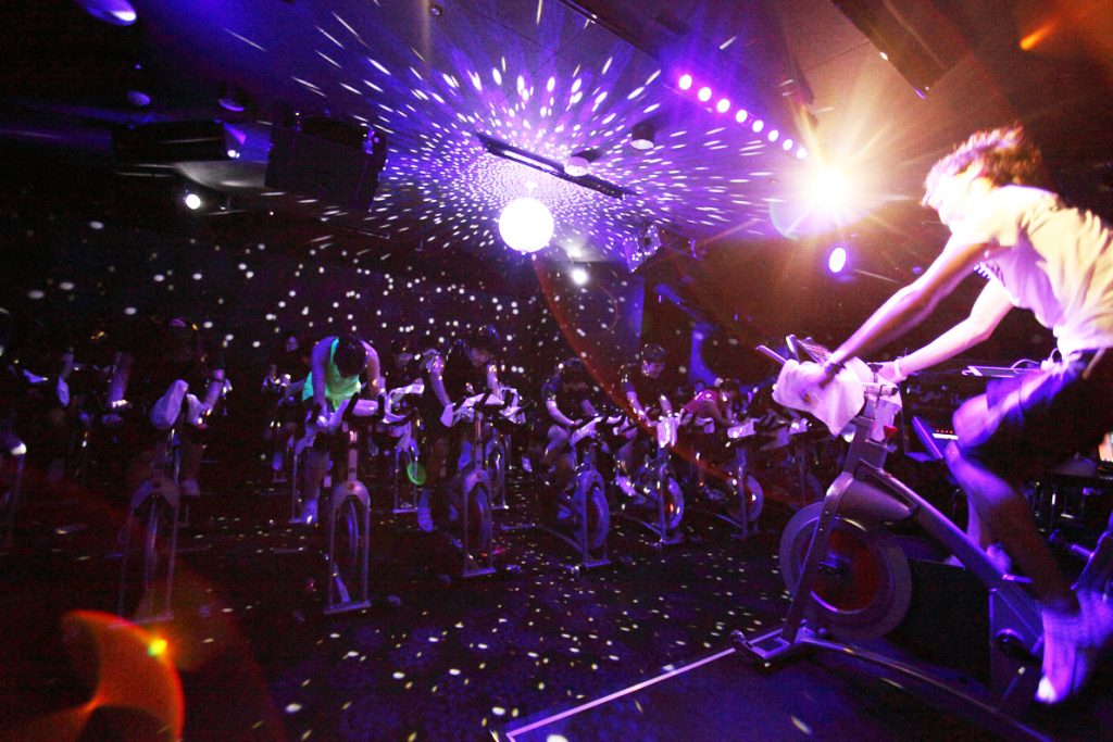NY発「暗闇バイクエクササイズ」の専門スタジオ。まるでクラブのような空間で音楽を楽しみながら行うグループレッスンで、1レッスンあたり400~800kcalという驚異の消費カロリーを実現。
